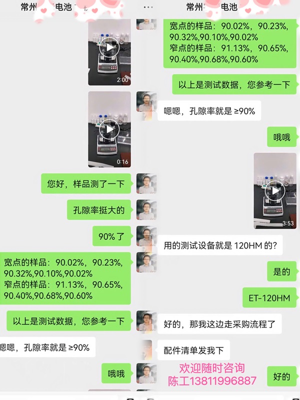 常州一電池廠的用戶打電話來咨詢我們的孔隙率測試儀,根據它要測試的產品質量很輕,鋰電池隔膜材料,推薦了ET-120HM多功能型密度和孔隙率測試儀。