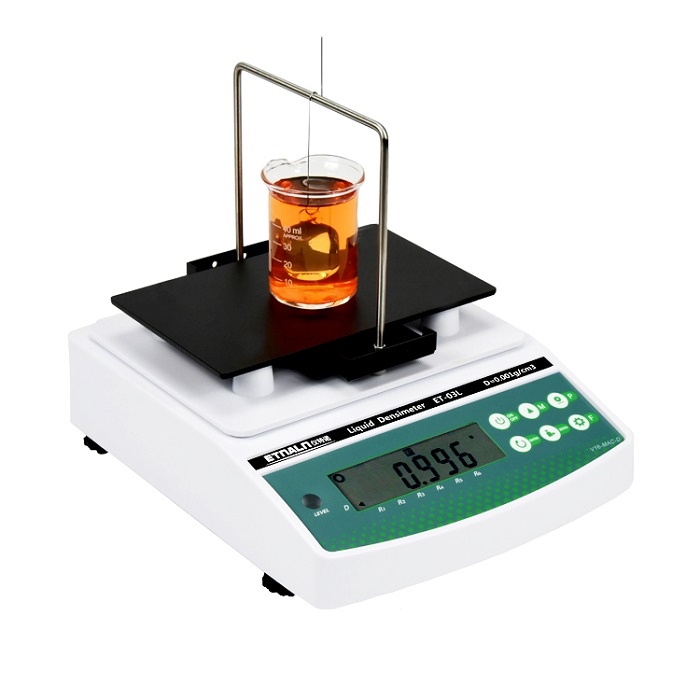 實(shí)驗(yàn)室常用的電子式液體密度計(jì)怎么測比重呢?采用阿基米德原理浮力法的電子液體密度計(jì),以常用的ET-03L為例,測量液體比重的步驟簡單,基本上在拿到儀器后,看下說明書就可以操作。