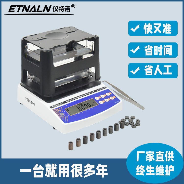 ET-320M 多功能固體密度測定儀遵循 ASTM B311、B328、GB/T5163、JIS Z2505、JIS Z2506、MPIF Standard42、MPIF Standard45 等標準規(guī)范,配備高精度稱重傳感器,無需將產品捆綁在水中測量。該儀器可瞬間得出密度值,并具備飽和測量法、表面覆蓋防水處理法、高粘稠介質液體法等多種測量方式。其測量精度高、數(shù)據(jù)可靠等特點。