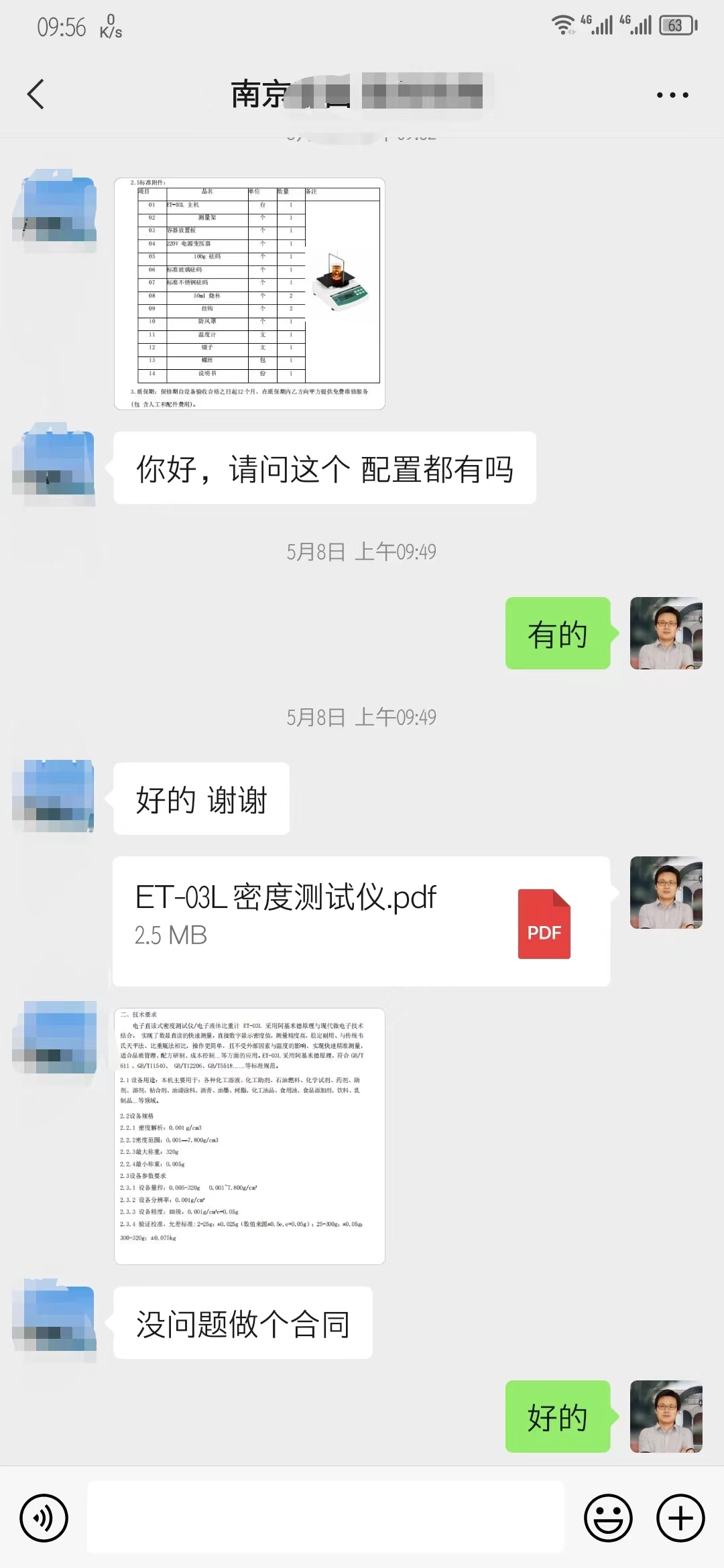 加上微信,儀器商發(fā)來一個截圖確定是液體密度計ET-03L的參數(shù),不到幾分鐘就確定了合同事宜!